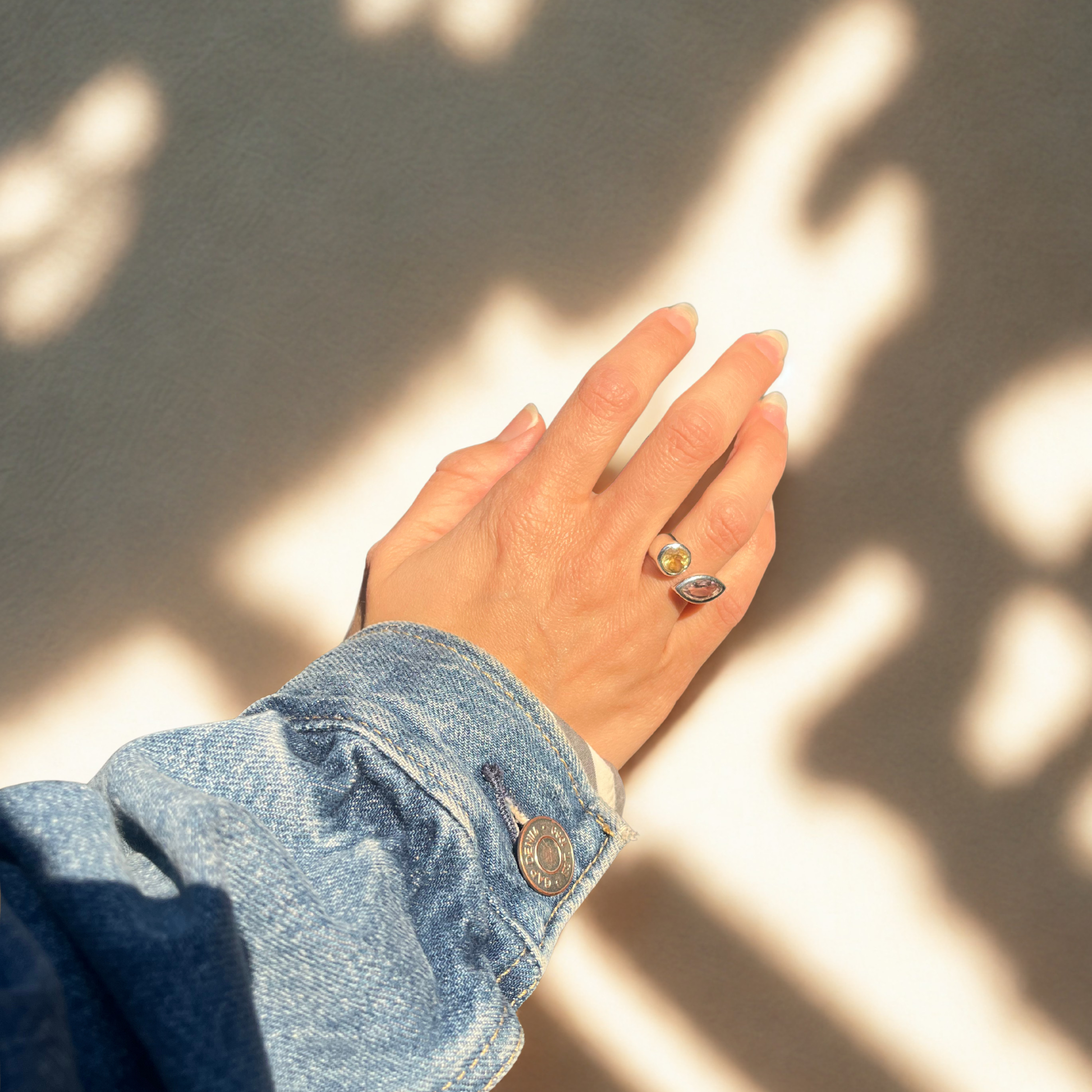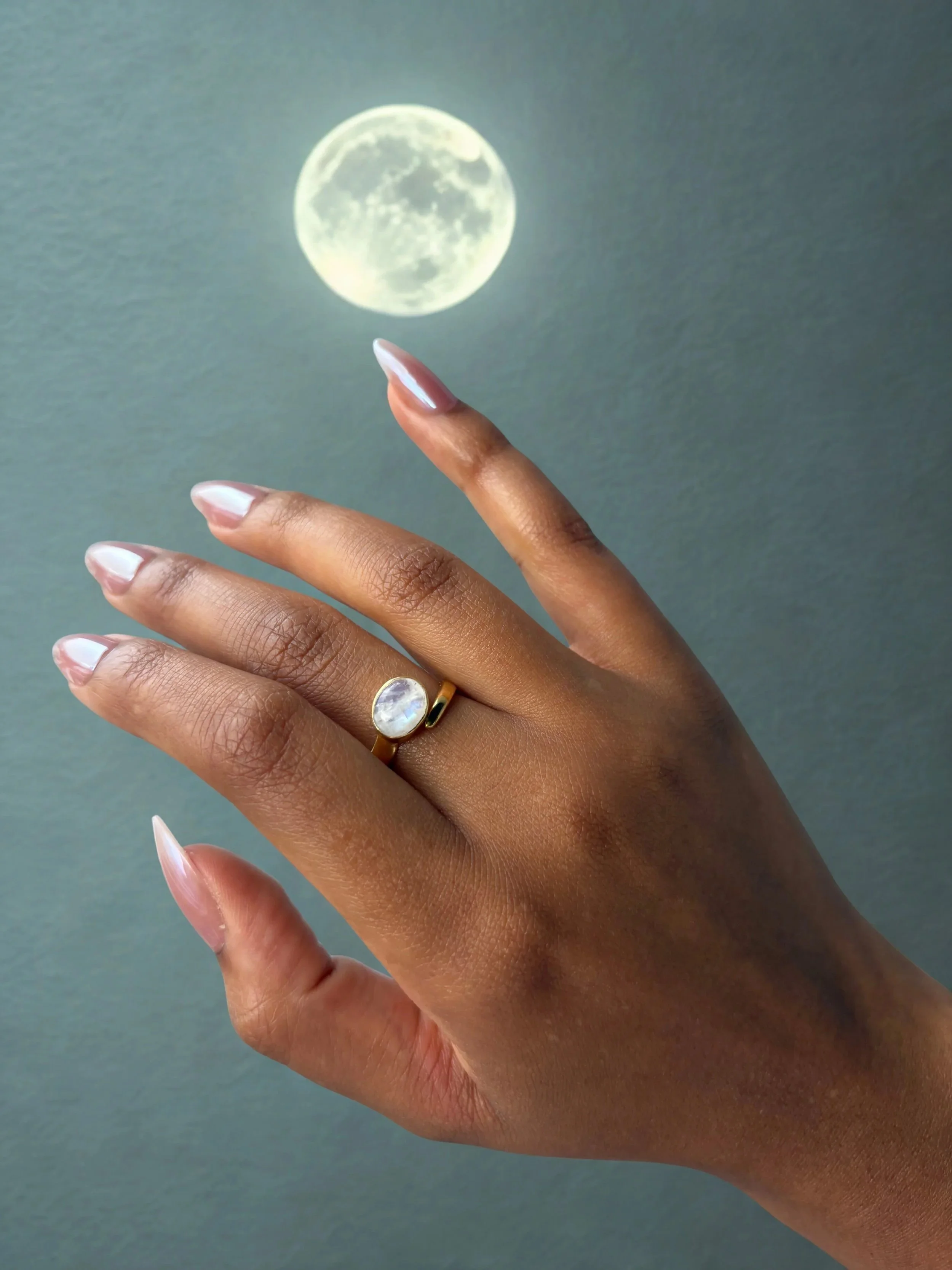 We celebrate individuality, craftsmanship, and mindful living.ALL PRODUCTS ARE HANDMADE IN SMALL BATCHES. "FLOW" SILK SCARF $95.00 LOLA RING IN GOLD $190.00 LOLA RING IN SILVER $190.00 "LUNA LLENA" MOONSTONE RING $150.00
